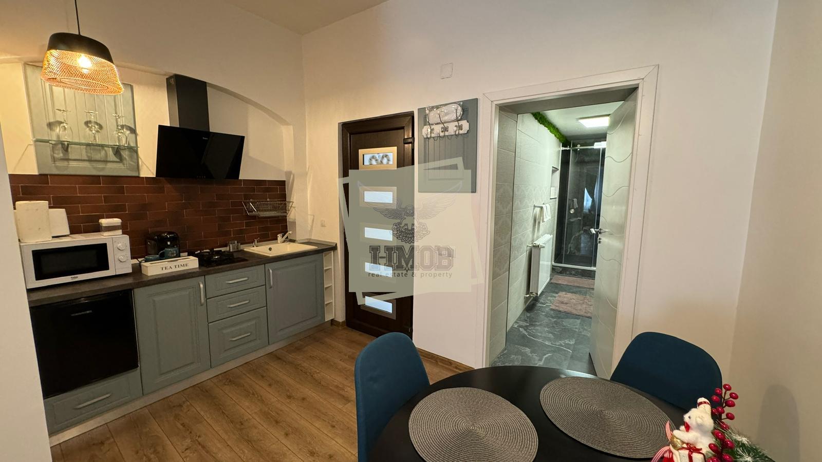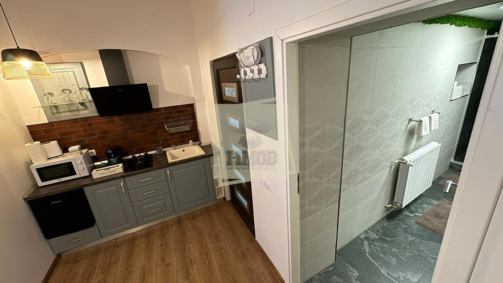 Supafata utila este de primul studio 40 mp si al doile studio 37 mp. Fiecare studio este alcatuita din dormitor cu pat matromonial, chicineta cu toate facilitatile, zona de dining, baie moderna cu geam.