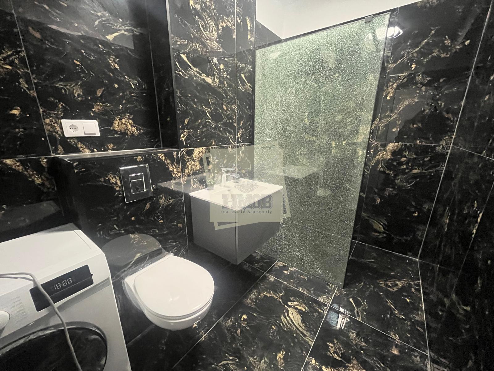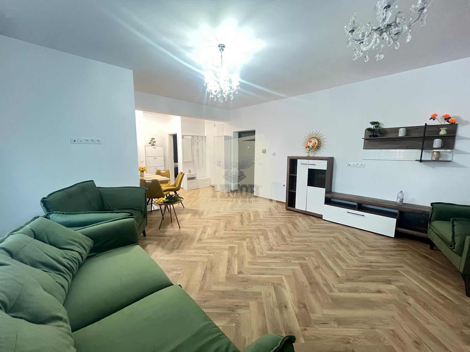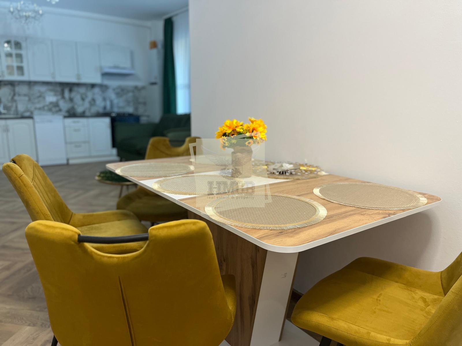 Apartamentul este NOU, nu a fost niciodată locuit. Este mobilat cu mobilier modern și utilat cu toate electrocasnicele necesare: plită, hotă, cuptor, combină frigorifică, mașină de spălat rufe, mașină de spălat vase, TV-uri etc. Este dotat cu uși interioare din lemn, ușă metalică la intrare, geamuri termopan în 3 foi de sticlă, mari, ceea ce îi conferă o luminozitate sporită, parchet de calitate, sistem de încălzire prin pardoseala, totul gândit pentru a vă oferi confortul dorit.