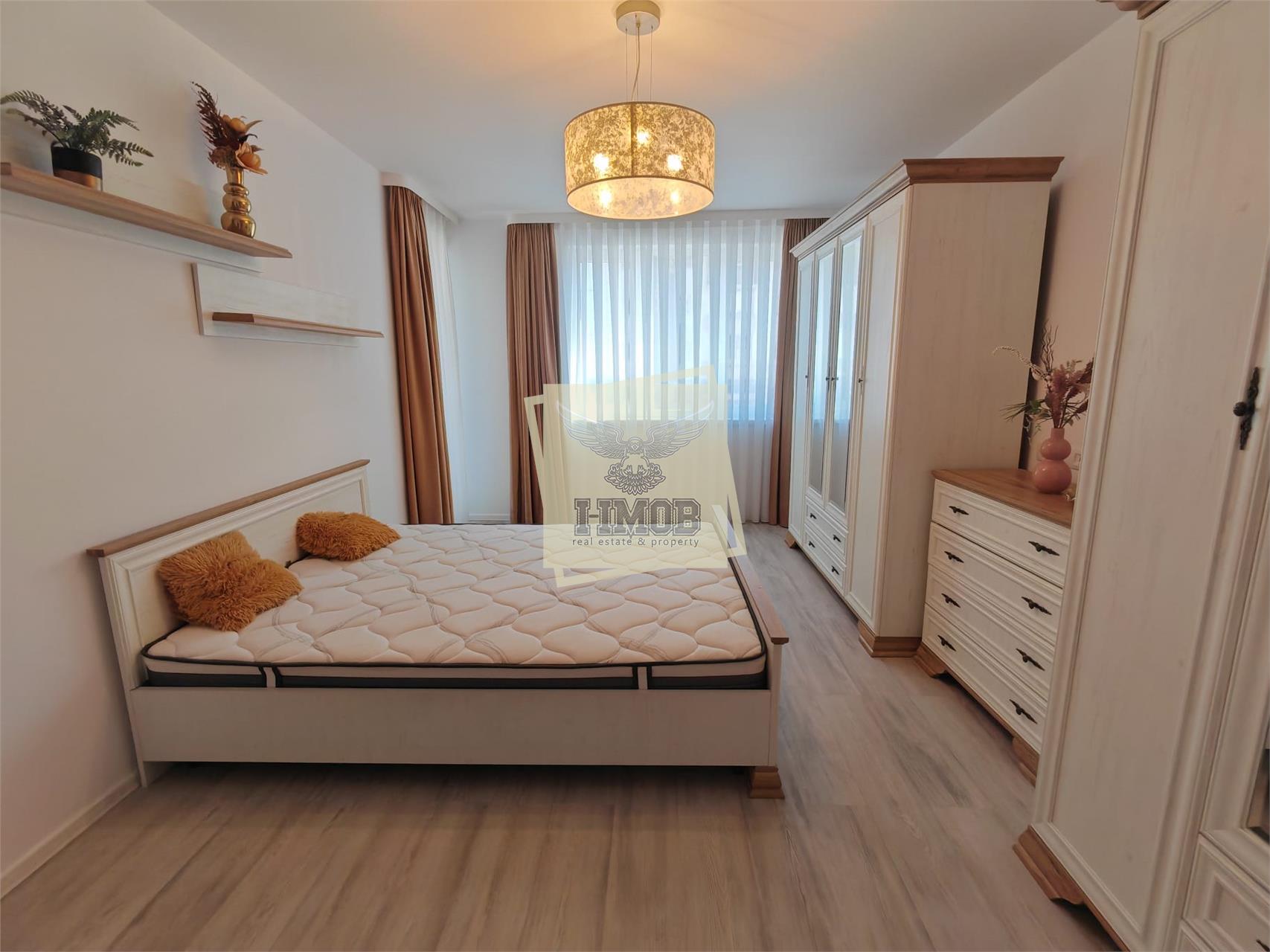 Apartamentul este mobilat modern, cu mobilier de calitate, executat la comanda si utilat cu toate electrocasnicele necesare: plita, hota, cuptor, combina frigorifica, masina de spalat rufe, masina de spalat vase etc. Este dotat cu gresie, faianta, parchet de calitate, usi interioare din lemn, usa metalica la intare, geamuri termopan etc.