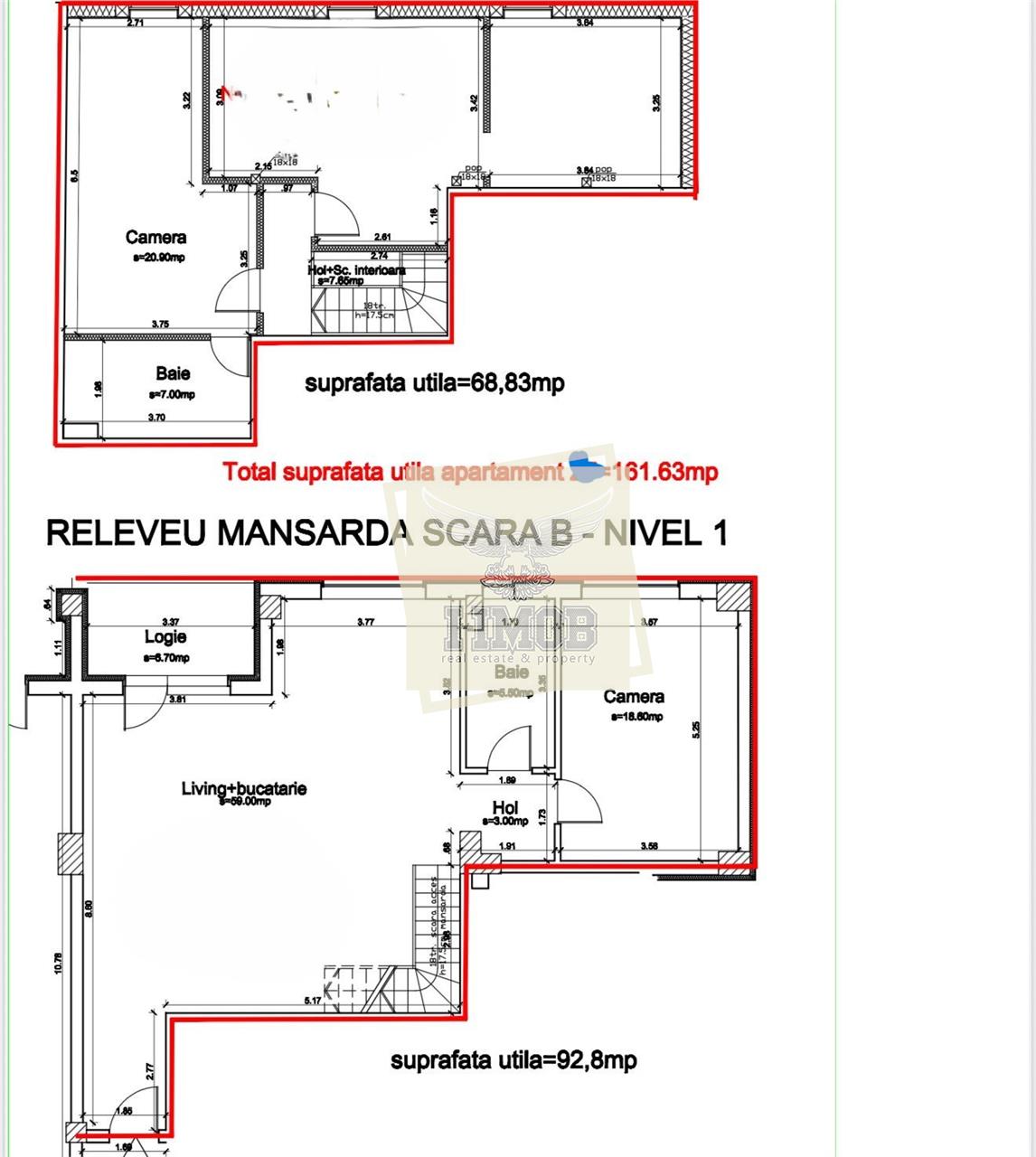 Este situat la etajul 4 al unui imobil nou, dotat cu lift si dispune de o suprafata utila de 154.93 mp distribuiti pe 2 niveluri: