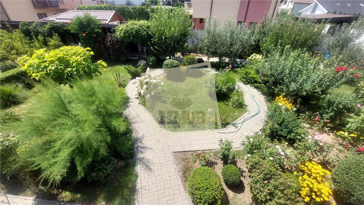 Teren liber este aproximativ 900 mp. Curtea este amenajata cu mult spatiu verde, alei pavate, pomi fructiferi, flori si plante decorative si vita de vie cu 20 de soiuri de struguri.