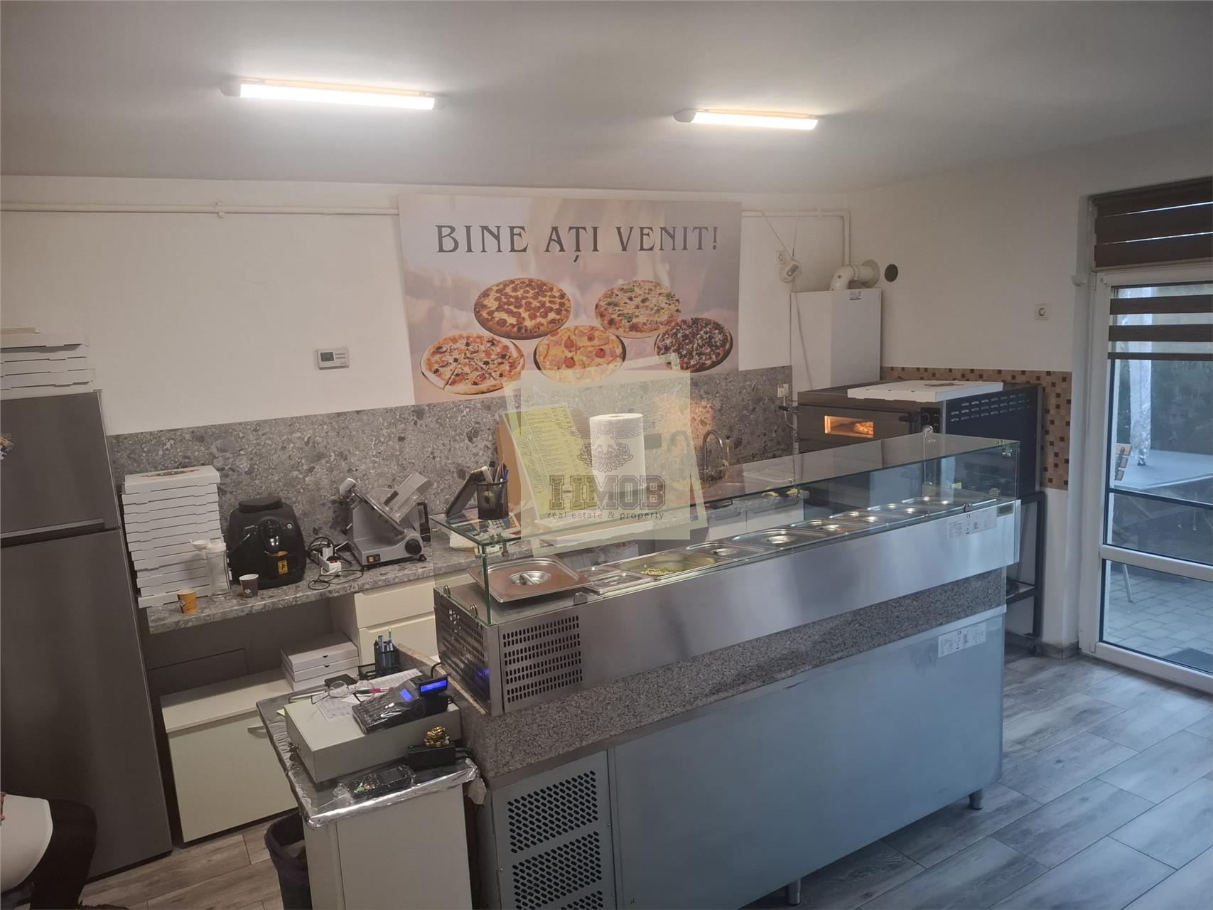 -Afacerea se vinde exact cum se vede in poze.Cuptor pizza,frigider,vitrina,frigider ,incalzire in pardoseala,terasa de 20 mp,1 loc de parcare inclus.